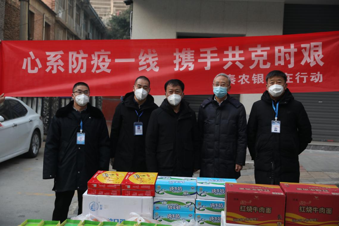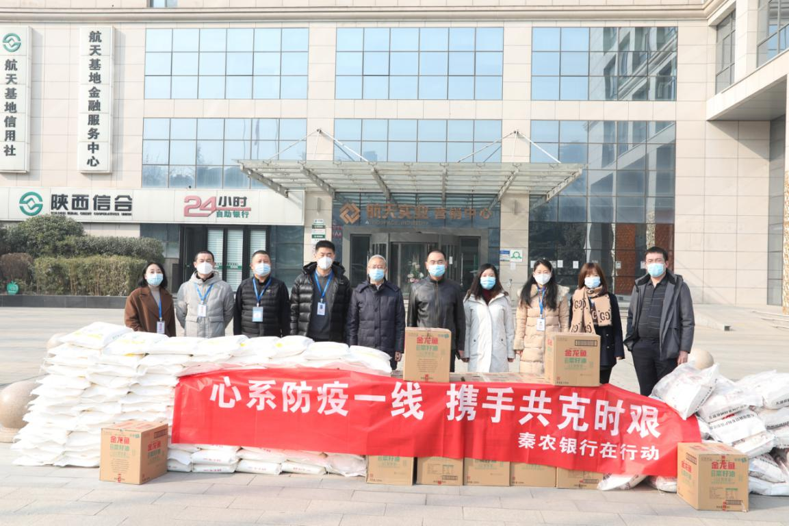 1月19日,为积极履行企业社会责任,体现企业社会担当,秦农银行长安联社为长安区农业区、农经站、韦曲街办、西安航天城事业发展有限公司、航天征迁办等政府部局及企事业单位送上温暖,捐赠大肉700斤、鸡蛋80盘、米、面各180袋、油158桶、牛奶20箱、方便面10箱、火腿肠2箱、苹果40箱、红牛4箱、防护服120套、口罩2400个等防疫及生活物资,用实际行动支持做好疫情防控工作。