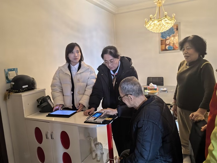 随着北方漫长冬季的来临,许多行动不便的老年人减少外出,居家过冬。近日秦农银行青年北街支行接待了一位不能亲临柜台换卡的客户家属,因客户家属也年纪较长,办理代理手续略显吃力,我行运营经理当即调整人员工作,安排柜面人员进行上门换卡工作。