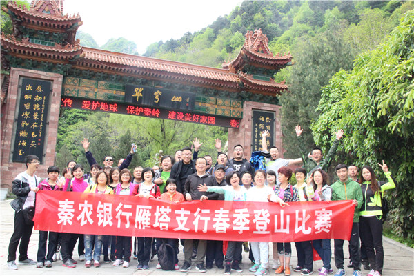 4月23日,雁塔支行利用周六休息时间组织机关干部职工30余人开展了户外登山比赛活动。