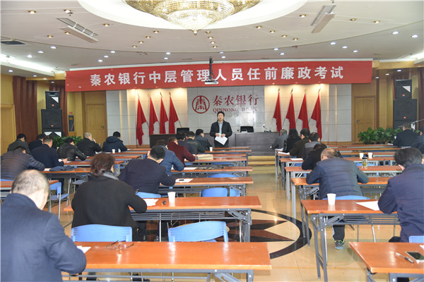 2月12日下午,按照我行党委安排,监察室组织42名中层管理人员进行了任前廉政考试。试题设计了“应知应会、案例分析、结合实际谈尽责”等内容,重点考查了参考人员对《党章》、《廉洁自律准则》、《纪律处分条例》和《党内监督条例》等党纪法规的学习掌握情况。大家一致认为,这次考试既是一次学习提高的机会,更是一次对标看齐的过程,充分体现了我行党委对员工在政治上的关心厚爱。通过廉政考试,进一步规范了我行中层管理人员选拔任用与监督工作程序,强化了廉洁自律的自觉性和责任感,提高了廉政教育时效性,对促进全行党风廉政建设起到了积极作用。