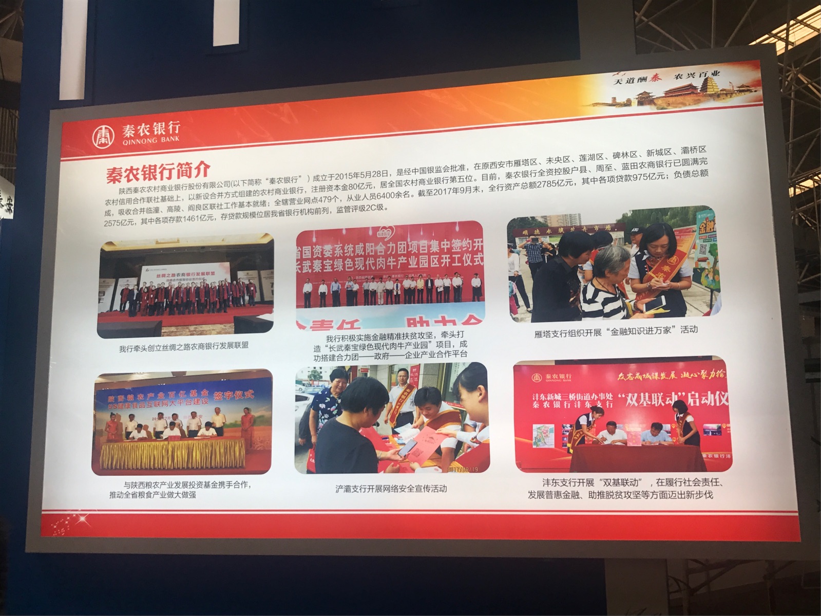 农高会开幕当天,陕西银监局副局长刘政、省金融办副巡视员王宪安参观了我行展台,对我行农高会参展工作及涉农金融产品等方面给予了充分肯定。展会上,我行通过发放宣传折页、播放宣传片、互动讲解、有奖问答、关注微信公众号等方式,向外展示了在服务"三农"、支持中小微企业、推进普惠金融、实施精准扶贫等方面的好产品、好做法、好经验,有效宣传了秦农银行在支农支小、服务三农的新形象。