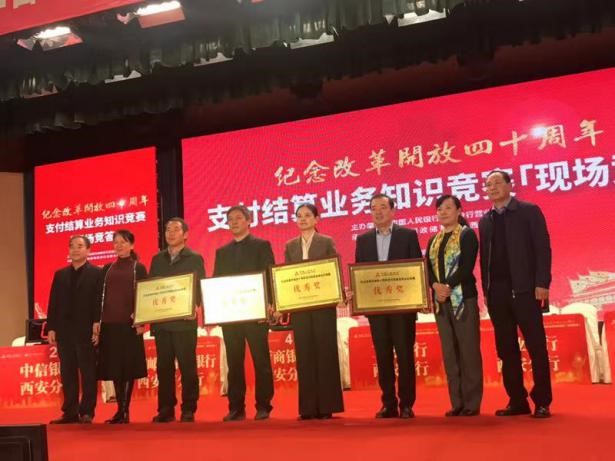 在刚刚落下帷幕的由人民银行西安分行营业管理部举办的“纪念改革开放40周年”银行业支付结算业务知识竞赛中,我行王佳馨、邓波、张燕茹、张依彤、柳玉琪等5名参赛选手在西安市33家银行业机构共165名参赛选手中脱颖而出,集体进入前20名,其中4名选手进入前6名,5名选手全部荣获优秀选手奖,我行也以优异的成绩获得团体优秀奖。