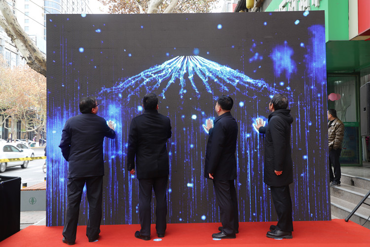 秦农银行党委副书记、行长郝光耀,副行长刘光明和区委副书记、代区长赵雷,副区长李亚省一起上台,在大屏幕上按下手印,启动雁塔双创综合服务平台——“雁创云”。