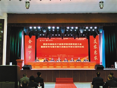 12月29日,由西安市政府主办,西安市金融办、秦农银行、中共周至县委、周至县政府承办的西安市首批农户信用评级贷款发放大会暨西安市与秦农银行战略合作协议签约仪式在周至县举办,首批8名农户获得65万元贷款。