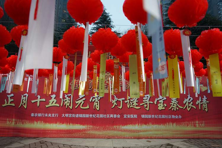 新春佳节元宵夜,万家灯火暖新春。值中华民族传统节日元宵节来临之际,为回馈广大客户、庆祝万家团圆,2月18日下午,未央支行携手大明宫街道锦园新世纪花园社区两委会等单位在锦园新世纪花园社区举办了以“正月十五闹元宵,灯谜寻宝秦农情”为主题的“猜灯谜闹元宵”庆祝活动。