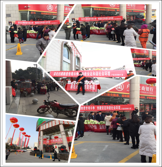 2月18日,户县农商银行借助鄠邑区举办2019年西安市鄠邑区春节群众文化展演活动的契机在人民路广场开展了内容丰富的扫黑除恶宣传活动。宣传活动以“深化扫黑除恶专项斗争 创建安定和谐社会环境”为主题,与“平安西安建设”宣传、“防范打击非法集资”和“防范打击电信网络诈骗”宣传活动相结合,主体鲜明,形式丰富,营造了对黑恶势力人人喊打的浓厚氛围。