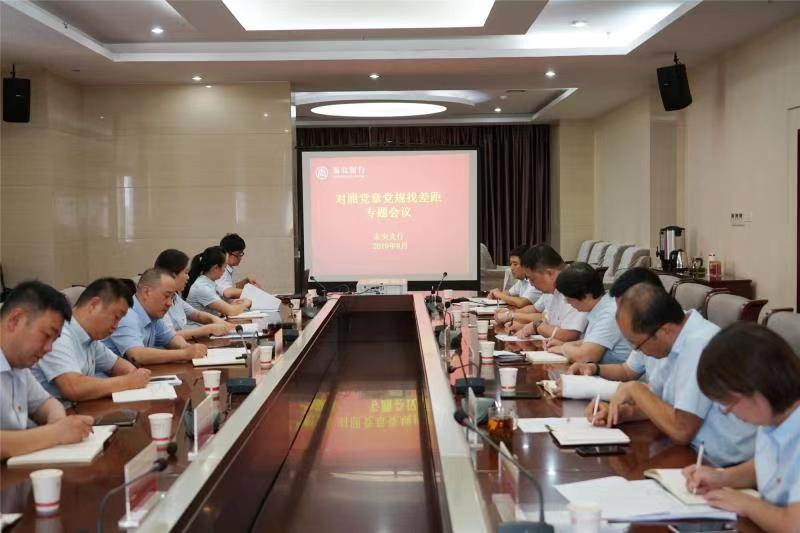 为进一步增强党员干部党的意识、党员意识、纪律意识,不断提升政治境界、思想境界和道德境界,8月16日,未央支行召开“不忘初心 牢记使命”主题教育对照党章党规找差距专题会,支行党委成员、各党支部书记、各部门经理20余人参加会议。