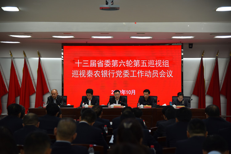 根据省委统一部署,2019年10月17日上午,省委第五巡视组巡视秦农银行党委工作动员会召开。会前,省委第五巡视组组长梁继业向秦农银行党委书记毛亚社,党委副书记、行长郝光耀传达了胡和平书记在全省巡视巡察工作会议暨十三届省委第六轮巡视动员部署会上的讲话精神。会上,省委第五巡视组组长梁继业就即将开展的巡视工作作了动员讲话,省委巡视办副主任崔景文代表巡视工作领导小组对本轮巡视秦农银行工作提出了具体要求,秦农银行党委书记毛亚社主持会议并作表态发言。