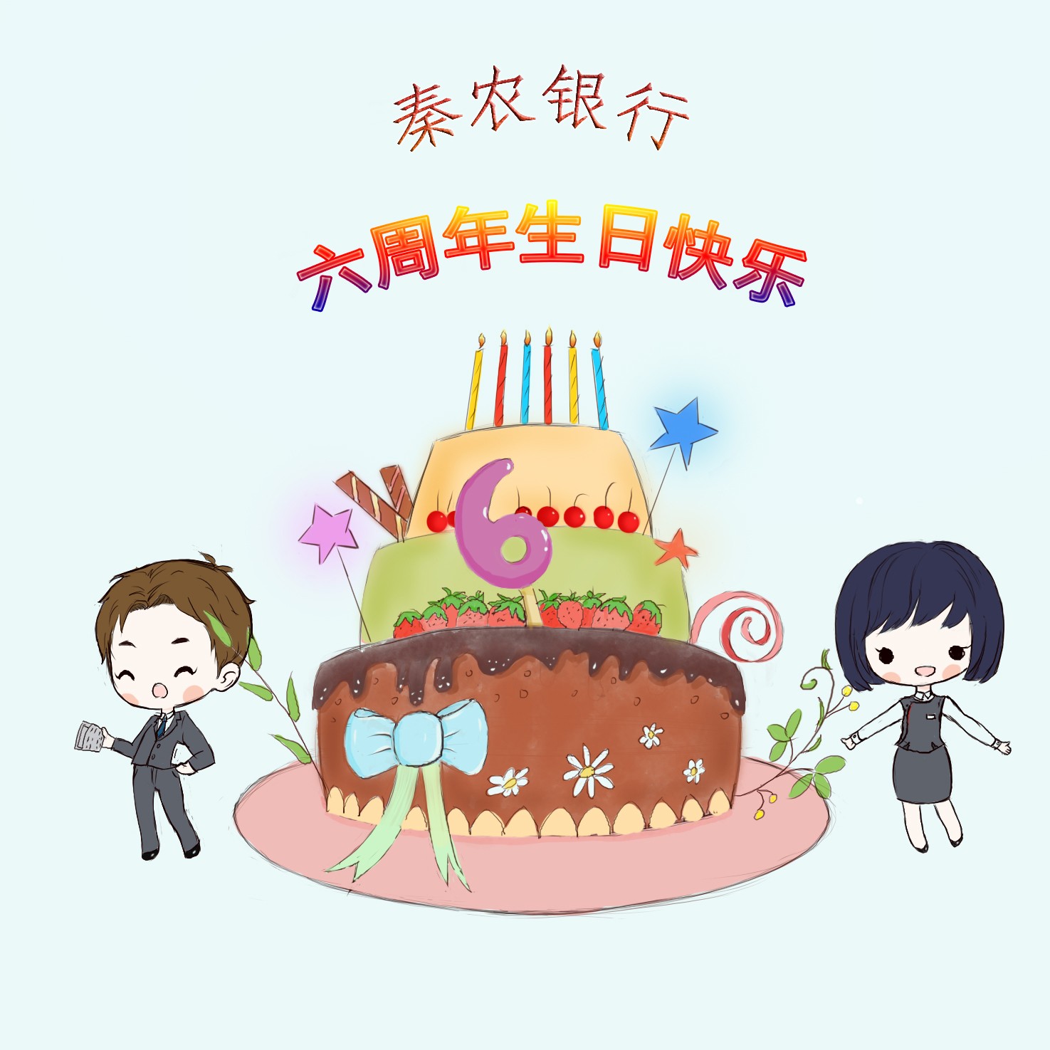 感恩相遇,相伴前行——秦农银行6周年行庆漫画