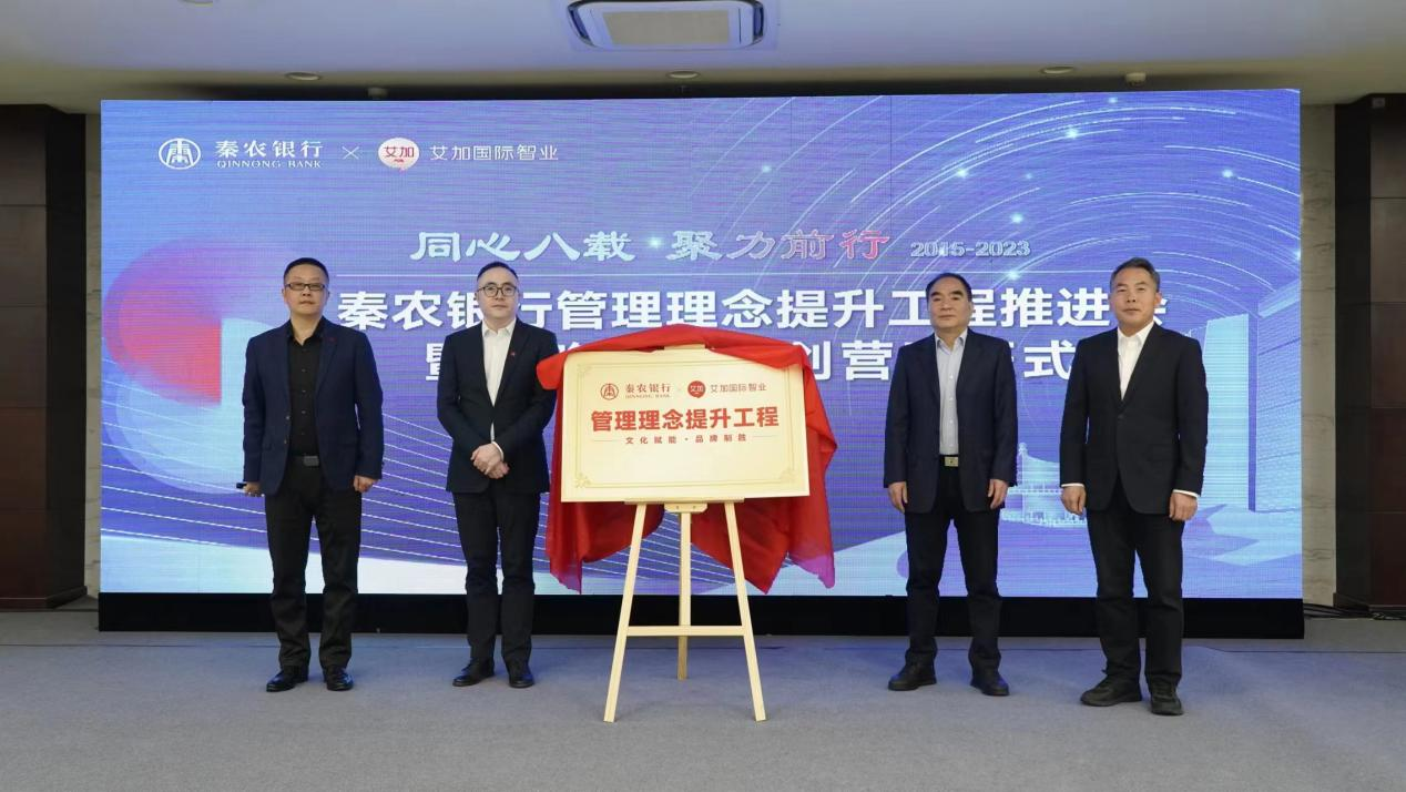 在总行党委副书记、监事长闫三选和艾加(上海)文化传播有限公司董事长蒋涛的见证下,由总行党委副书记、行长刘光明和艾加咨询总监奚风华共同为秦农银行管理理念提升工程揭牌,标志着我行此项工作步入实质性推进阶段。随后,闫三选同志代表总行党委进行了致辞,回顾了从长安“稻地江”艰难起步到秦农银行改制成立、不断发展,从“板凳银行”到全功能银行,从传统业务到现代金融的发展历程,指出这些成绩的取得,都是全行不忘金融为民初心、肩负服务实体使命的新时代新实践,是秦农人管理理念与时俱进不断提升的新探索新成果。推进会的召开,更是标志着全行管理理念提升工程迈向了新阶段,为我们深度融入陕西高质量发展战略,高标准完成“十四五”规划目标,打造全国一流农商银行奠定更加坚实的基础。
