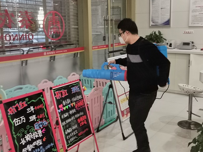 为严格落实西安市高新区金融服务办公室《西安高新区疫情防控“五个全覆盖”工作实施方案》的要求,坚决打赢新型肺炎防控战役,全力保障客户的安全健康,锦业支行高度重视、迅速响应,在该网点负责人带领下,周密安排部署,扎实开展营业大厅卫生消杀工作。支行工作人员分工明确,认真进行卫生保洁,清理大厅、柜台内部卫生死角,排除安全隐患。同时还请专业的消杀人员,运用专业设备,对营业大厅、自助机具等公共区域进行重点喷雾消杀,确保消杀全覆盖、零死角、无缝隙。