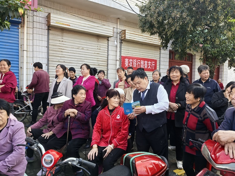 精彩的演艺节目吸引了众多村民来到现场,工作人员借此契机,为老人们普及金融知识、送上暖心服务,通过发放宣传折页、观看反诈视频、面对面讲解等多种形式,向老人们讲解针对老年人诈骗的多种骗局及相关案例。手把手教老人如何辨别真假币,让老人们提升安全意识,防范风险,为金融安全建设添砖加瓦。