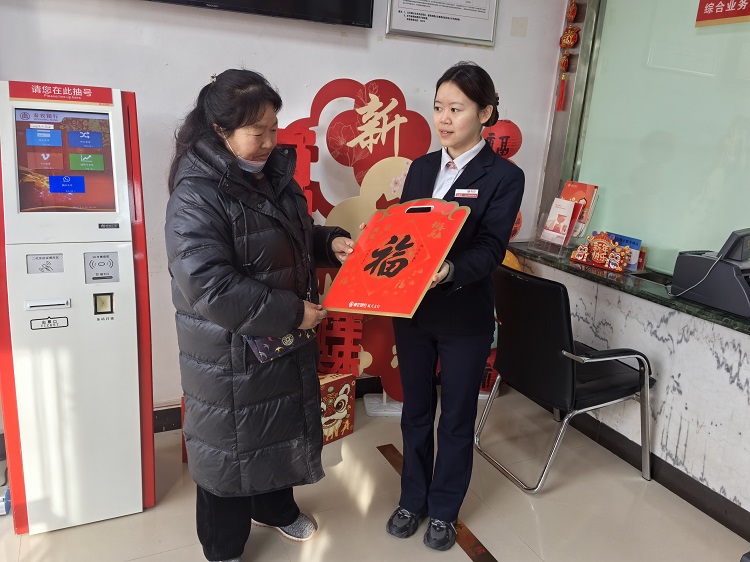 同时,工作人员为前来办理业务的新老客户送上新春福袋,针对不同客群,介绍我行金融产品及优惠政策。