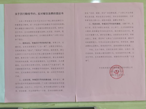 为贯彻习近平总书记关于“厉行节约、反对浪费”的“新食尚”理念,响应西咸新区沣东新城号召,落实总行相关工作安排,沣东支行党委相继组织开展了关于节约粮食倡议、反对浪费承诺以及节粮知识竞答等活动,旨在大力弘扬中华民族勤俭节约的优秀传统,大力宣传节约光荣、浪费可耻的思想观念,努力使厉行节约、反对浪费在支行蔚然成风。