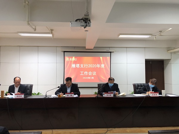 3月24日,雁塔支行召开2020年度工作会议。支行领导班子,中层管理人员及部分机关员工共50余人在支行十一楼主会场参加会议;各二级机构运营经理、客户经理等40余人通过远程视频参加会议。会议由支行副行长刘小鹏主持。