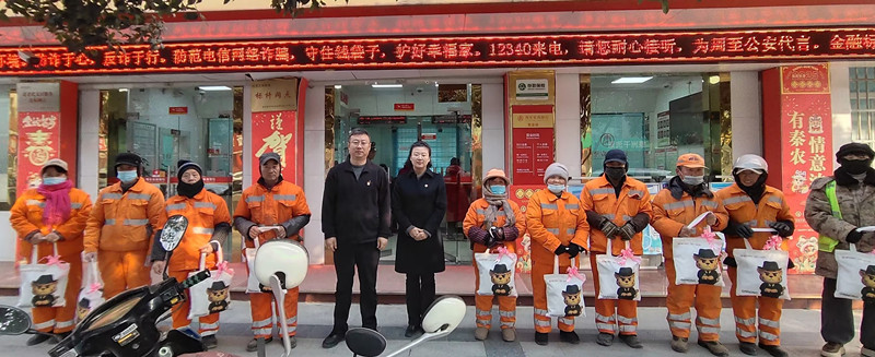 寒冬送暖,情系一线。近日,在总行工会的统筹指导与支行党委的周密部署下,周至支行在营业室户外劳动者服务站点开展“暖冬行动·关爱同行”主题慰问活动,为坚守在一线的环卫工人送上精心筹备的冬日关怀,用实际行动为户外劳动者驱散严寒、传递秦农温暖。